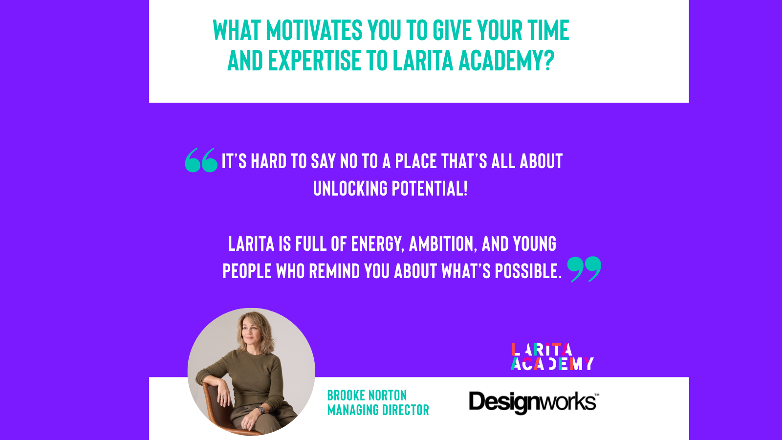 We’re here to back young people to believe in themselves and their futures. Larita Academy equips young people with the skills, confidence, and networks they need to thrive at work, in business, and in life.